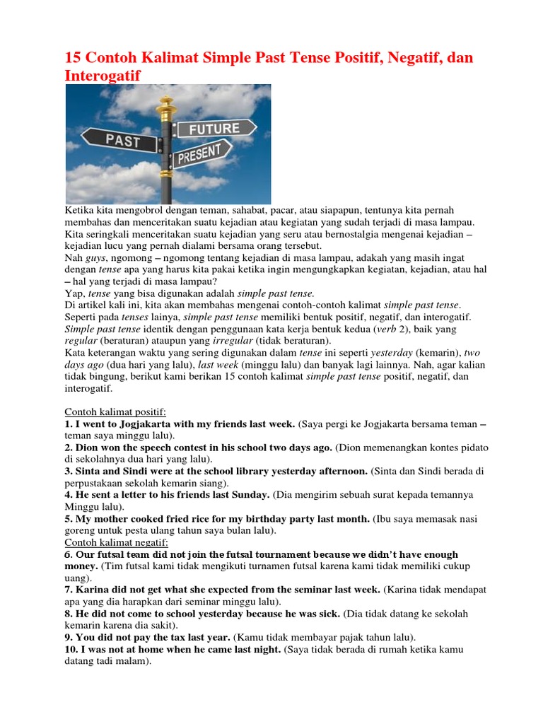 Simple present tense merupakan kalimat yang digunakan untuk menggambarkan suatu kejadian yang saat ini sedang berlangsung atau kejadian yang berlangsung secara umum, kalimat simple present dapat di klasifikasikan ke dalam tiga jenis, yaitu kalimat positif, negative dan pertanyaan. Demikianlah contoh kalimat nominal simple present tense yang dapat admin berikan untuk sahabat kbi semua. Berbagai bentuk kalimat positit, negatif. She doesn't read harry potter book everyday. Kalimat interogatif bahasa inggris itu sebenaranya disebut juga kaliamt yes no begitulah berbagai contoh kalimat simple past tense positif negatif dan tanya dalam bahasa inggris dan artinya.